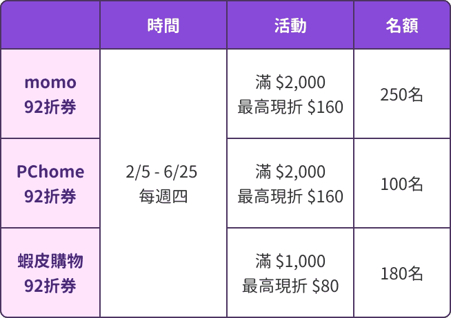 2026/2/1 - 6/25 每月 1 號開放領取當月券